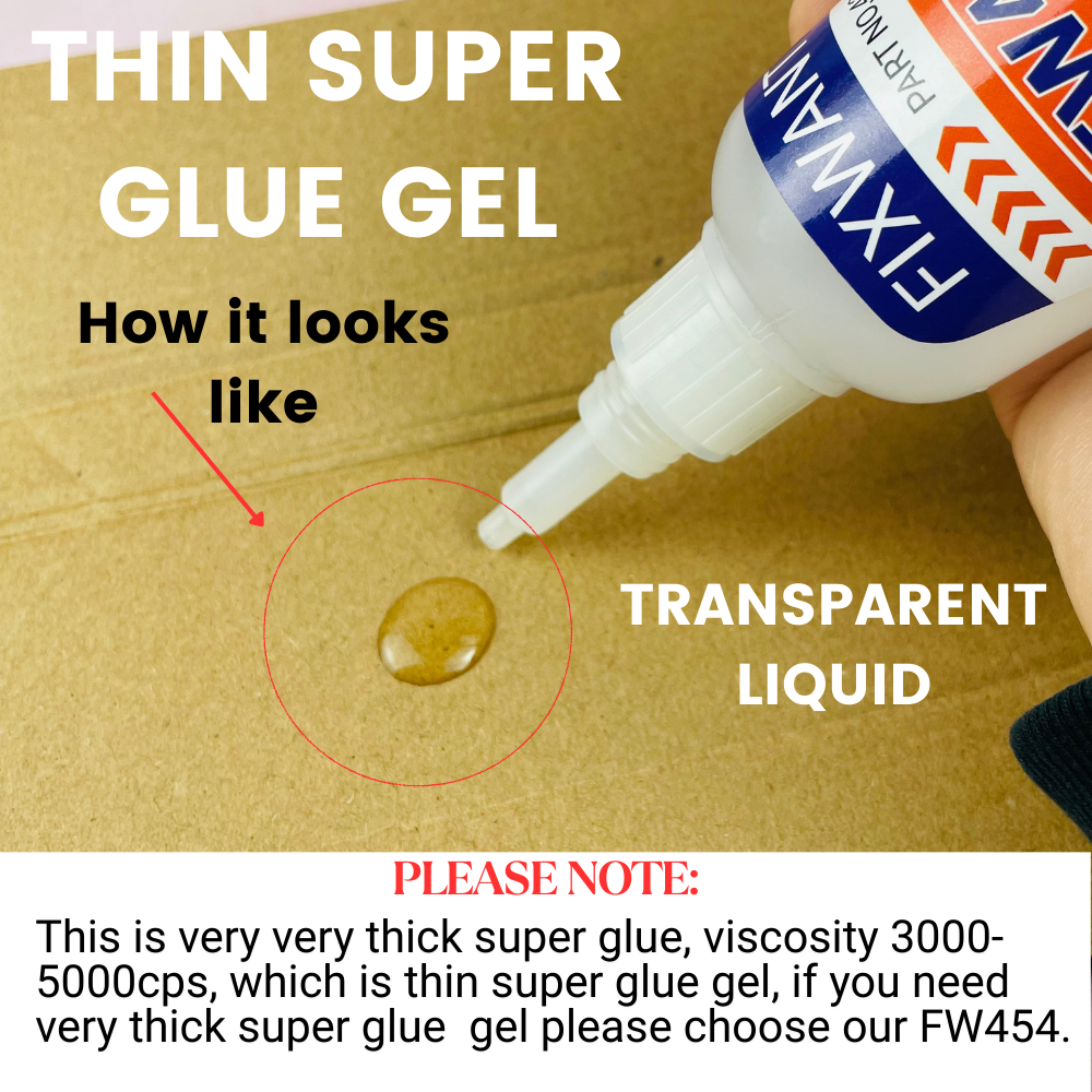This is very very thick super glue, viscosity 3000-5000cps, which is thin super glue gel, if you need very thick super gluegel please choose our FW454.